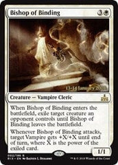 When Bishop of Binding enters the battlefield, exile target creature an opponent controls until Bishop of Binding leaves the battlefield.