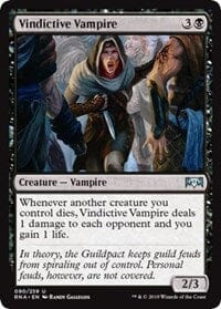 Whenever another creature you control dies, Vindictive Vampire deals 1 damage to each opponent and you gain 1 life.